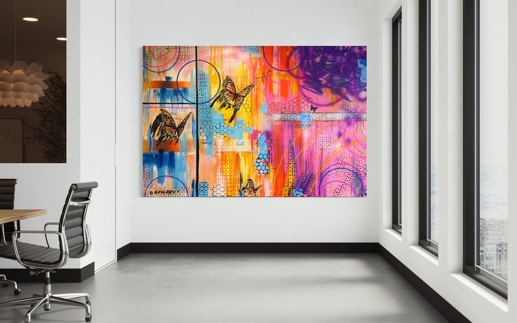 "Wings of Color" showcases a masterful interplay of vibrant hues and intricate design, capturing movement and emotion with precision. This piece delivers a dynamic visual experience, making it ideal for collectors seeking artwork that combines technical expertise with vivid expression. Its nuanced palette and skilled execution highlight refined artistic techniques, elevating any setting with a sophisticated touch.